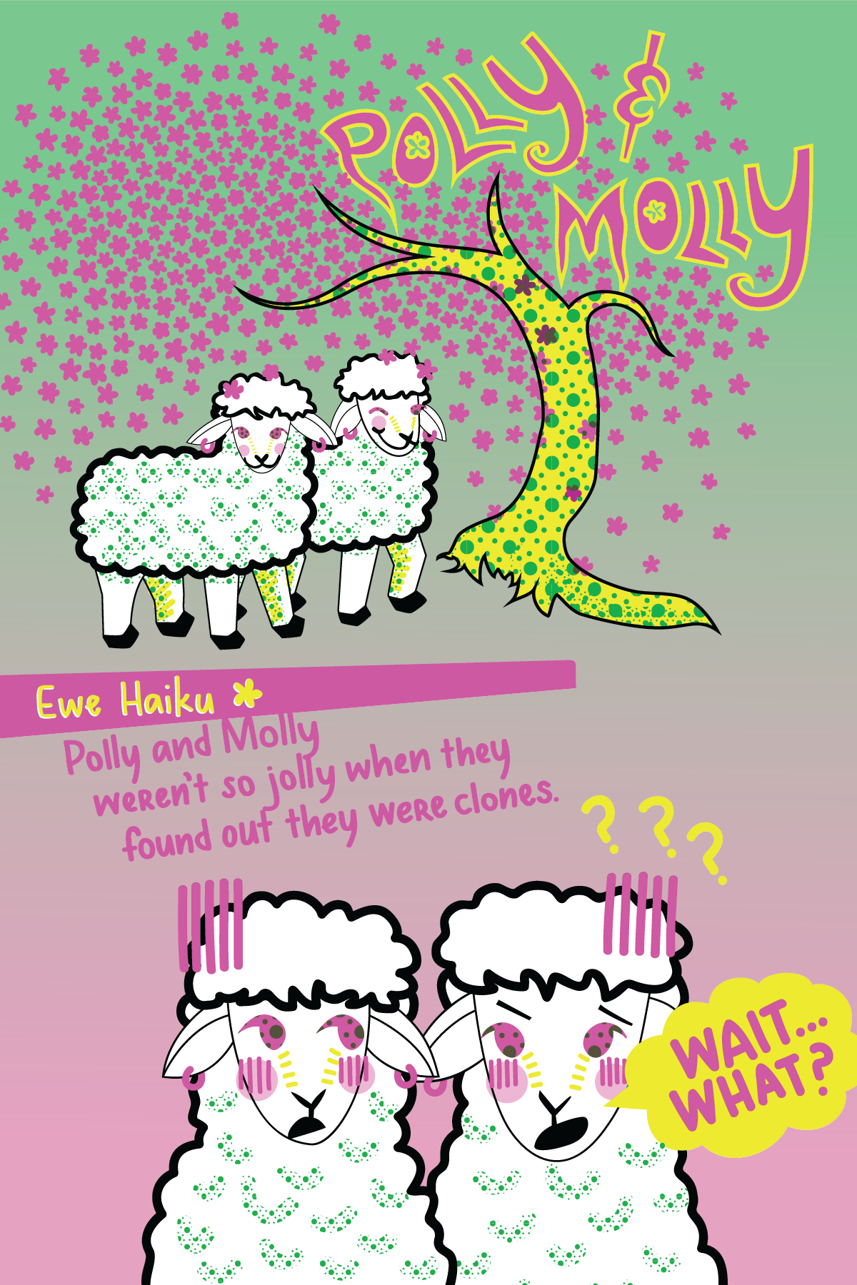 Poster inspired by the cloned sheep Polly & Molly. Design was made into risograph prints.